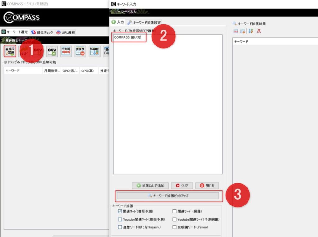 COMPASS:キーワード拡張ピックアップの使い方です。